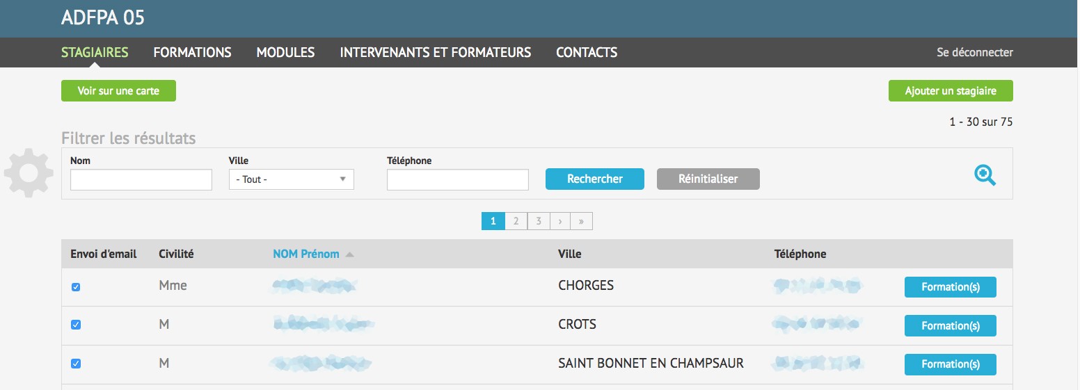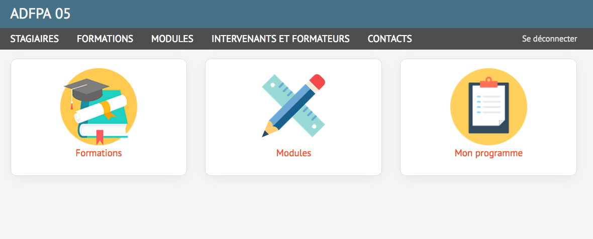 Pour fluidifier leur gestion interne, nous avons conçu un outil entièrement sur-mesure à partir duquel ils peuvent gérer les stagiaires, les programmes, les modules, les inscriptions, les plannings, les stages, etc.
