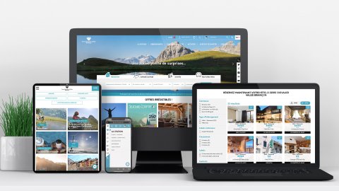 L’un des enjeux majeurs du site internet de l’Office de Tourisme repose sur la saisonnalité afin d’adapter les contenus du site selon les saisons. Un switch entre les deux saisons est possible à tout moment sans changer l’URL du site. Les menus, les fiches Apidae ou encore le moteur de réservation s’adaptent en fonction. Un changement de charte graphique est aussi possible mais ce n’était pas le cas ici.